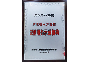 公司先后荣获“全国人力资源服务诚信示范机构”、“湖北省人力资源服务业领军企业”、全省服务业“五个一百工程”重点企业、“湖北省服务业企业100强”、“湖北省人力资源诚信服务示范机构”、“湖北省重合同守信用企业”、“武汉市五星级人力资源服务机构”、“武汉市五星基层党组织”、“中国车谷招才引智优秀企业”等称号。