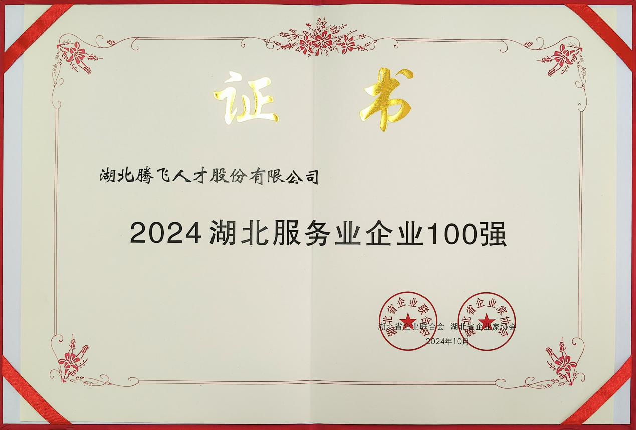 连续3年荣获“湖北服务业企业100强”